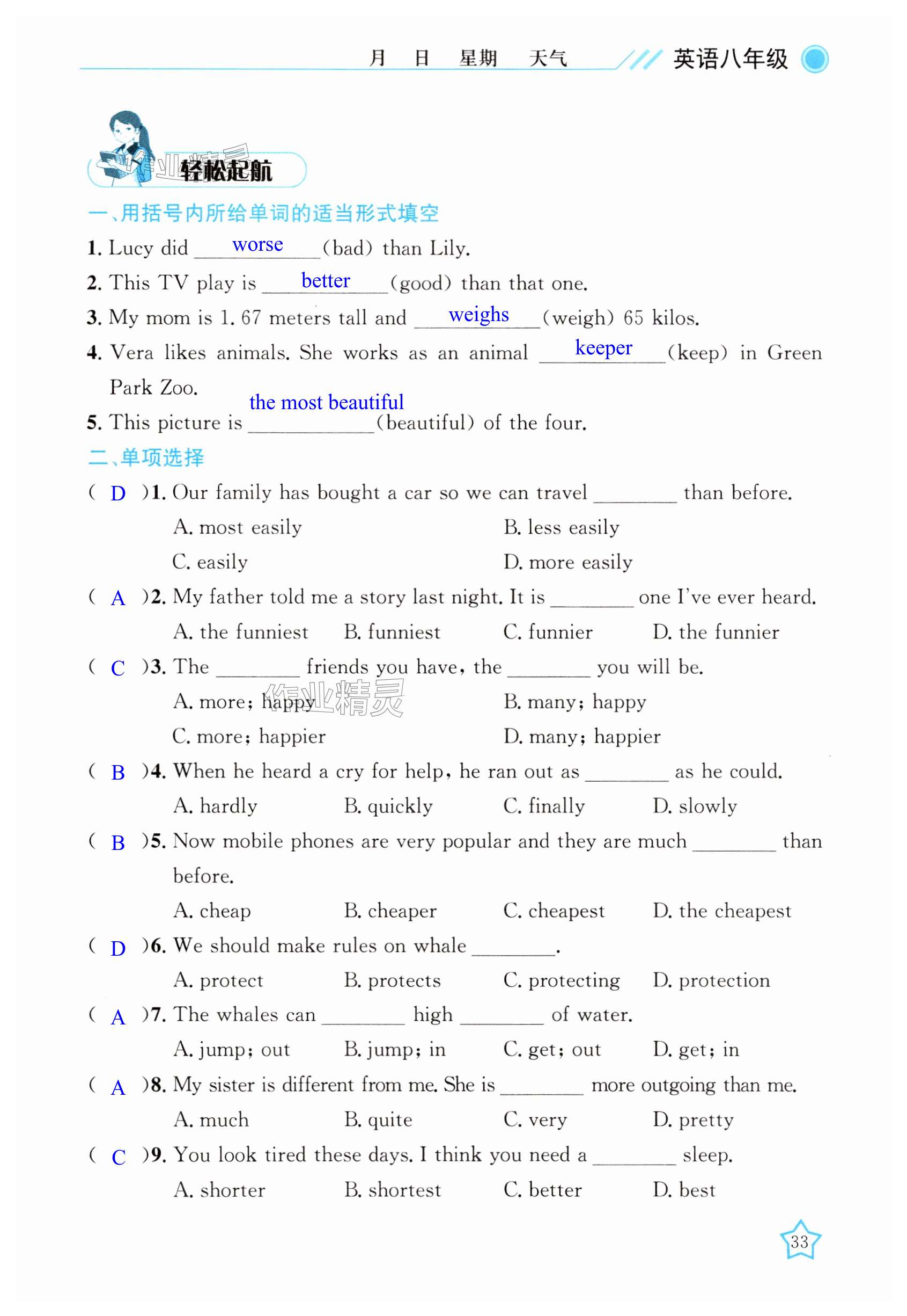 注:目前有些书本章节名称可能整理的还不是很完善,但都是按照顺序排列的,请同学们按照顺序仔细查找。练习册 2025年湘岳假期暑假作业八年级英语人教版 答案主要是用来给同学们做完题方便对答案用的,请勿直接抄袭。