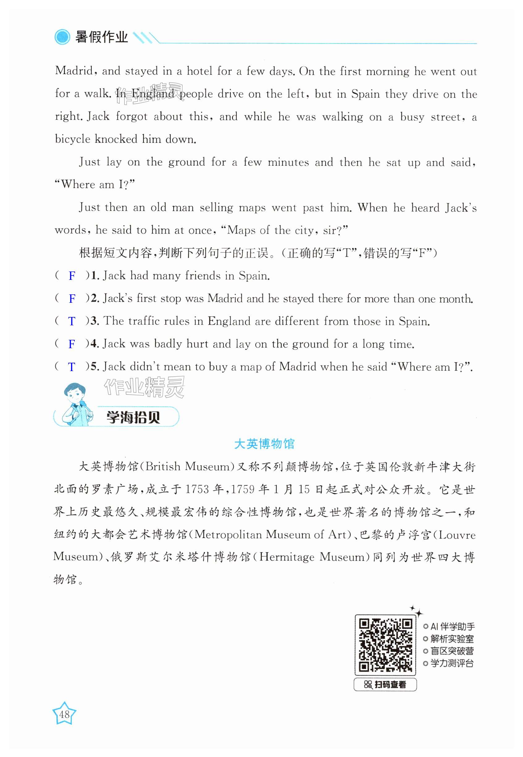 注:目前有些书本章节名称可能整理的还不是很完善,但都是按照顺序排列的,请同学们按照顺序仔细查找。练习册 2025年湘岳假期暑假作业八年级英语人教版 答案主要是用来给同学们做完题方便对答案用的,请勿直接抄袭。