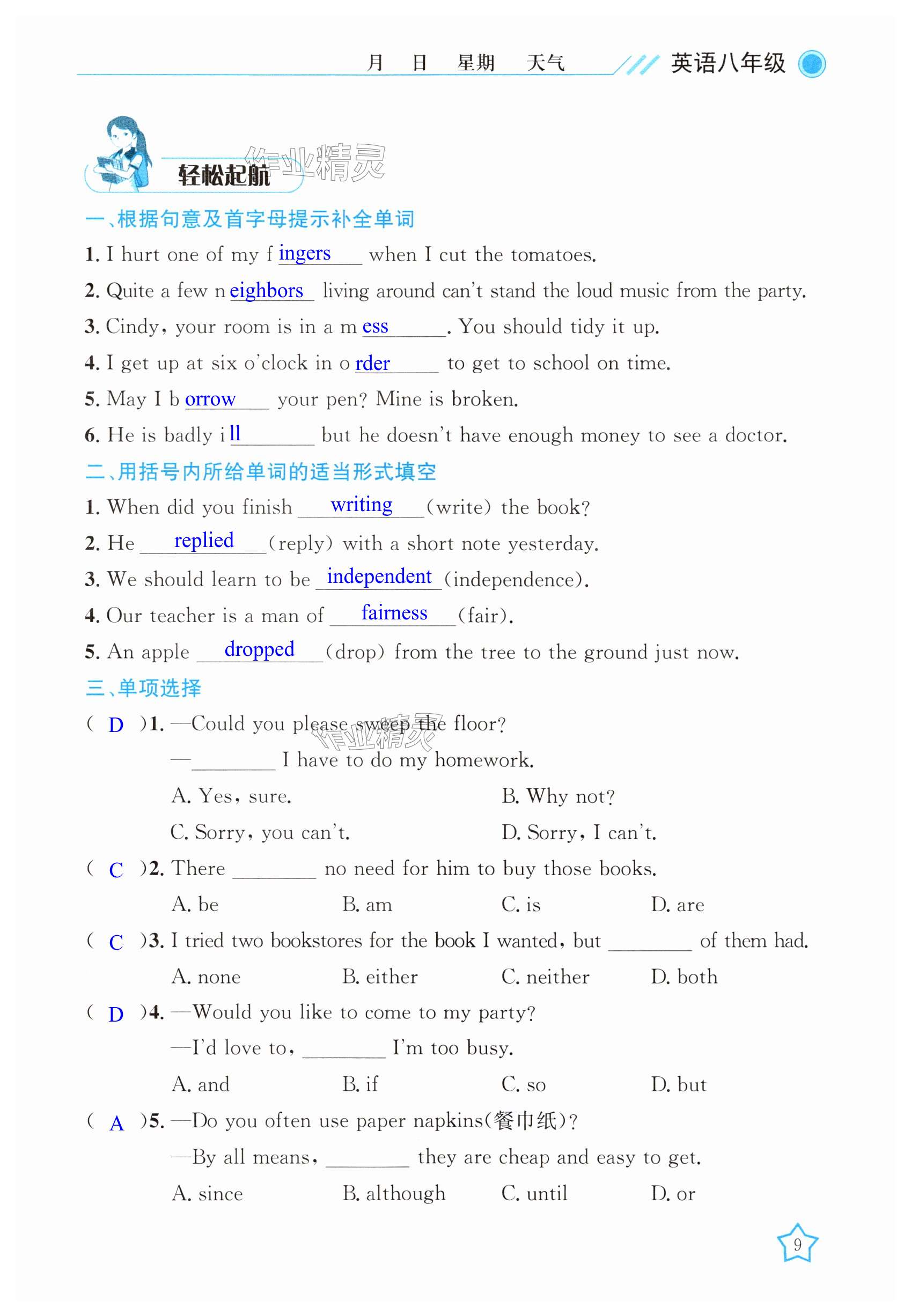 注:目前有些书本章节名称可能整理的还不是很完善,但都是按照顺序排列的,请同学们按照顺序仔细查找。练习册 2025年湘岳假期暑假作业八年级英语人教版 答案主要是用来给同学们做完题方便对答案用的,请勿直接抄袭。