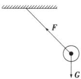 2. 一根绳子系着一个小球在竖直平面内摆动。请作出小球摆动到右边最高点时,小球所受绳子拉力$F$与重力$G$的示意图。