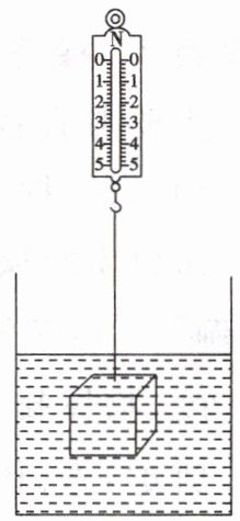 - 例4 如图,重为$5N$,体积为$0.2×10^{-3}m^{3}$的物体用细线系在弹簧测力计的挂钩上,将它浸没在水中,物体受到的浮力是______N,静止时弹簧测力计的示数是______N($g取10N/kg$)。