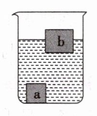 - 例3 小明看到清淤作业人员正在将水塘底部的淤泥搬运到船上。他想:水面高度会变化吗?于是进行了探究:首先,将石块a和不吸水的木块b置于装有水的烧杯中,如图所示;然后,将石块a从水中拿出并轻轻放在木块b上,它们处于漂浮状态,则水面高度将( )
