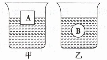 6. 甲、乙两相同的容器中装有体积相等的两种液体,静止放置在水平桌面上。将同种材料制作的实心物体A、B分别放入两容器中,静止时液面等高,如图所示,则()