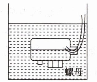 11. 如图所示,用轻质薄壁的塑料瓶、透明胶带、铁质螺母和塑料软管制作潜水艇模型,潜水艇在水中受到浮力的方向是______,潜水艇通过改变______来实现浮与沉,因此需要选择质量合适的螺母作为配重。如果塑料瓶的容积为$V$,水的密度为$\rho_{水}$,铁的密度为$\rho_{铁}$,要让瓶内有一半水时,潜水艇恰能在水中悬浮,则所选螺母质量的表达式为$m= $______。