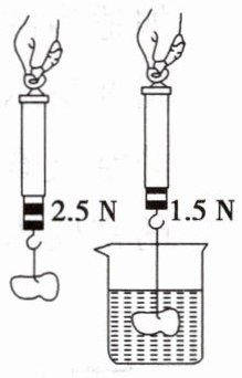 12. 小彤想测量校园里一小石块的密度,她利用弹簧测力计、烧杯及足量的水,完成了测量,步骤如图所示,小石块所受的浮力为$F_{浮}= $______N,小石块密度为______$kg/m^{3}$。