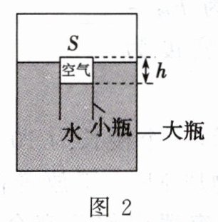(3) 图 2 中小瓶内空气的体积为 $ V = Sh $,