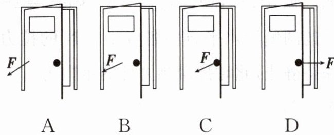 2. 如图,用大小相同的力,分别在不同位置按图示方向开门,最容易的是()