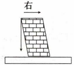 【解析】:重力的方向是竖直向下的,建筑工人利用重垂线检测墙体是否竖直就是运用了这一原理。重垂线与墙体平行时墙体竖直,不平行时,重垂线的方向是竖直向下,墙体向重垂线偏离的相反方向倾斜。图中重垂线向左偏离墙体,说明墙体向左倾斜。