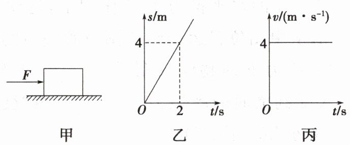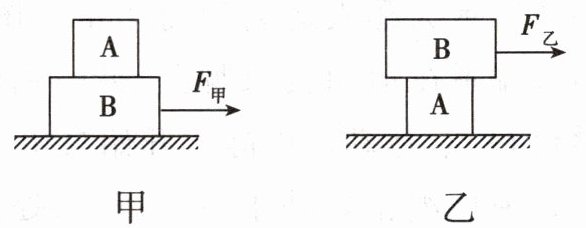 9. 如图所示,A、B两个粗糙程度相同的物体以甲、乙两种不同的方式叠放在同一水平地面上,分别用水平方向的拉力$F_{甲}和F_{乙}$使AB一起向右运动,甲运动的$s - t图象和乙运动的v - t$图象分别如图丙、丁所示,已知$F_{甲} = 10N$,下列说法正确的是()
