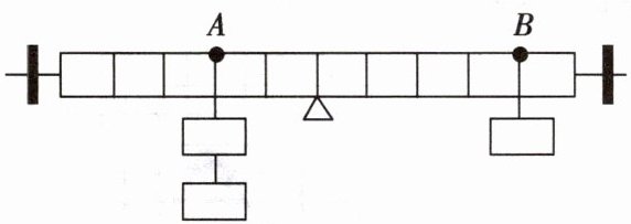 2. 如图所示,每个钩码的质量为$50g$,在均匀杠杆的$A处挂2$个钩码,$B处挂1$个钩码,杠杆恰好水平平衡。在$A$、$B两处再各加1$个钩码,那么()