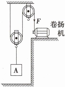 7. 用如图所示的装置提升重为$800N的物体A$,动滑轮重为$200N$。在卷扬机对绳子的拉力$F$作用下,物体$A在10s内竖直匀速上升了2m$。在此过程中,不计绳重和摩擦,下列说法正确的是()