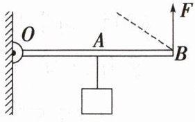 3. 如图所示,轻质杠杆$OB可绕O$点转动,$OA = AB$。在$A$点悬挂物体,在$B$点竖直向上拉动杠杆使其始终保持水平平衡,拉力为$F$。下列说法正确的是()
