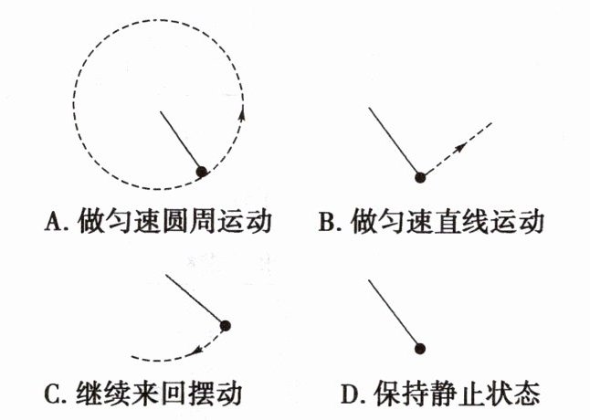 (3)小芋思考了一个问题:当自己荡秋千运动到右侧最高点时,假设受到的力全部消失,自己将处于怎样的运动状态呢?你认为下列选项中正确的是______(图中的黑点表示小芋)。