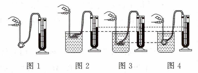 (3)如图3、图4所示,保持探头在水中的深度不变,改变探头的方向,观察U形管左右两侧液面的变化,得出结论:______。