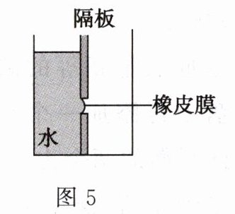 ①向如图5所示容器中的左侧倒入适量的水,橡皮膜向右凸起;