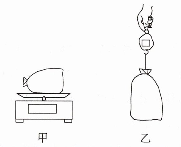 (1)在图乙中,当米袋静止时,拉力器的示数与这袋米所受重力的大小________。