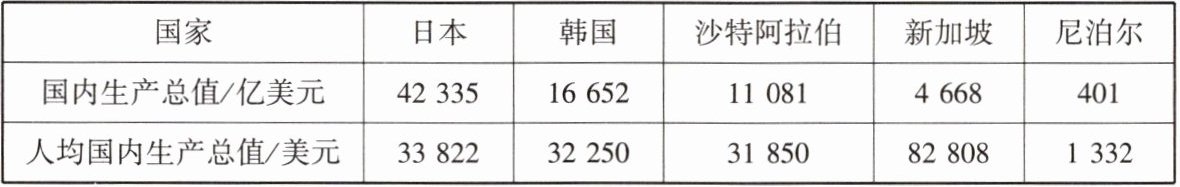 亚洲各国经济发展极不平衡。下表为2022年亚洲部分国家国内生产总值、人均国内生产总值统计表。
