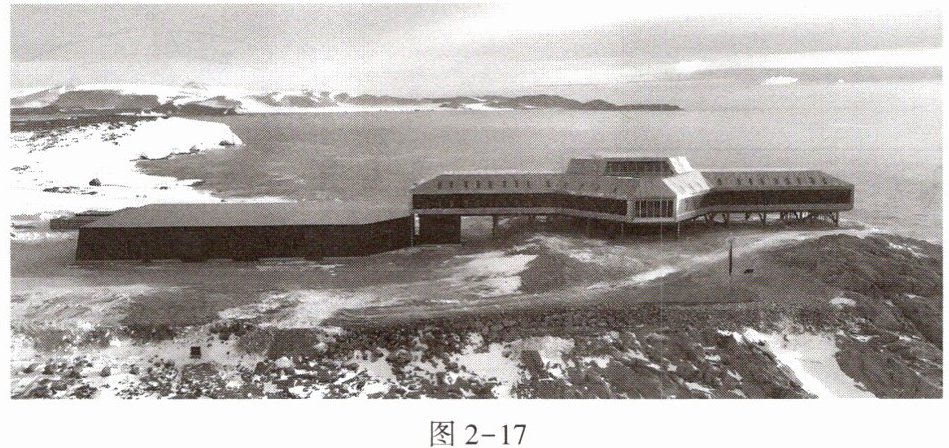 2024年2月7日,我国第五个南极科考站秦岭站开站,其建造时采用装配式、模块化建设体系,建筑模块在国内加工完成后,再运到现场像搭积木一样拼装,仅用60天就成功完成建站。图2-17为秦岭站实景图。据此完成17~18题。