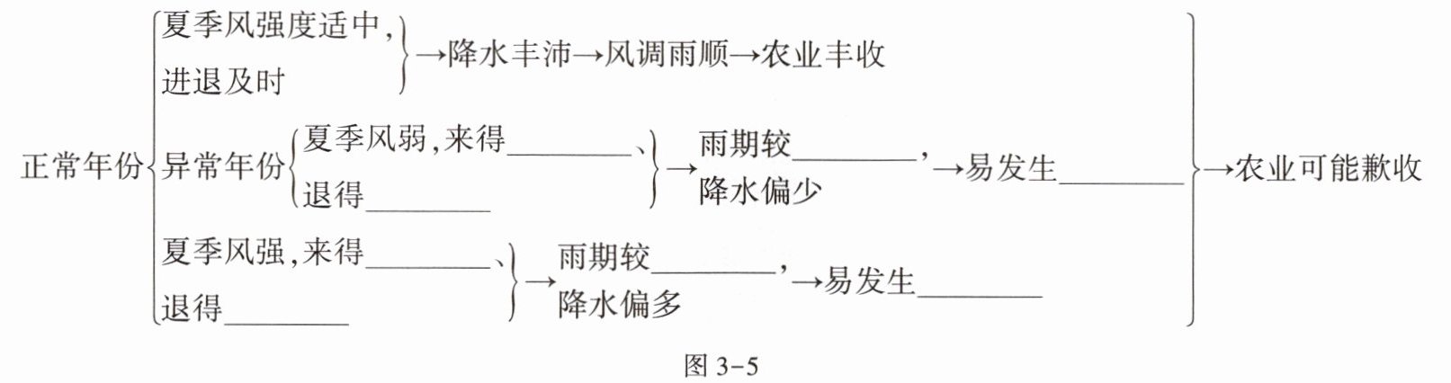 (2)晚;早;短;旱灾;早;晚;长;涝灾