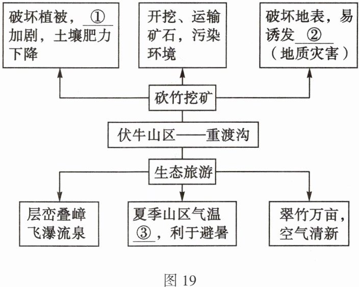(1)①水土流失 ②滑坡、泥石流 ③低