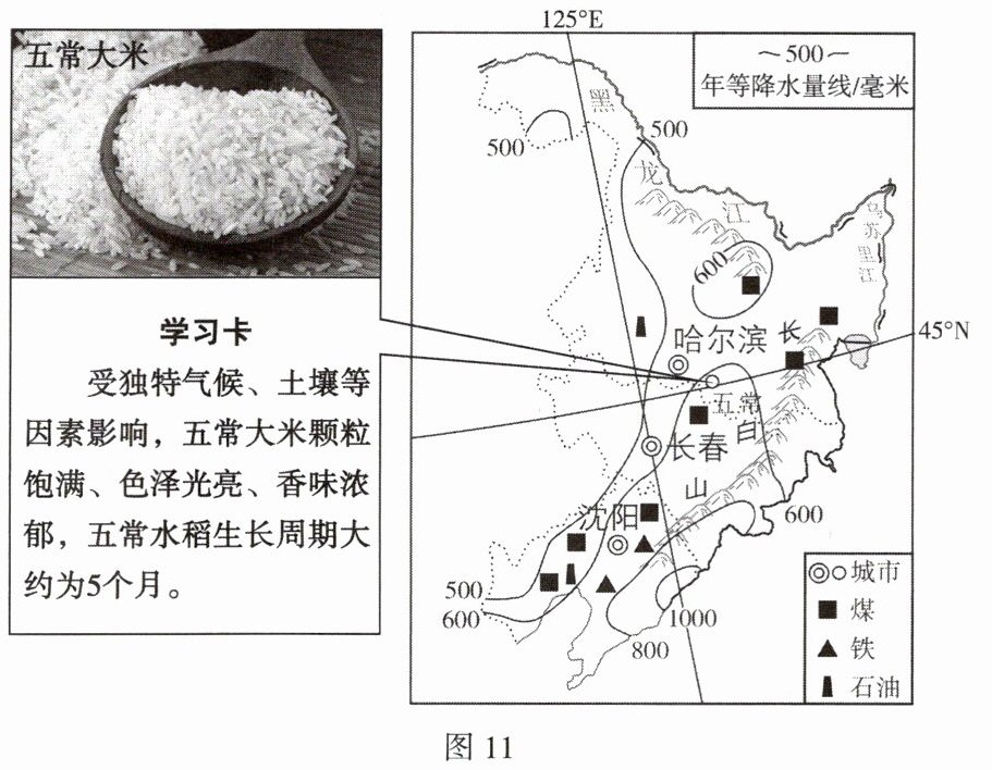 2. 东北三省被誉为“新中国工业的摇篮”。为了振兴东北,国家出台了一系列优惠政策。图11为东北三省示意图。据此完成下列问题。
