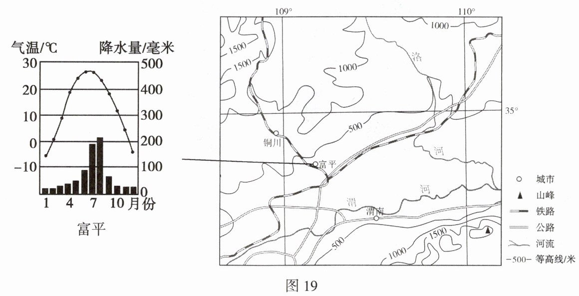 材料二:图19为富平县位置示意图和富平县气候统计图。