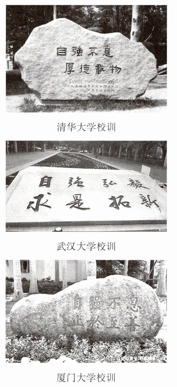 14. 校训是一个学校办学理念、治校精神的反映,也是校园文化建设的重要内容,更是教风、学风、校风的集中表现。以下校训共同勉励青少年 ()