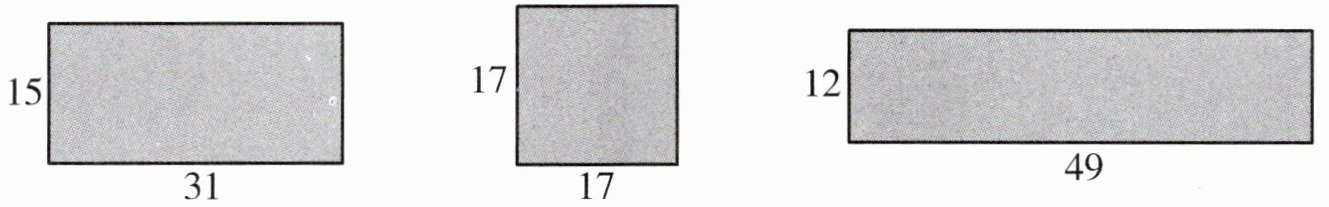 $ 15 × 31 = 465 $(平方厘米) $ 17 × 17 = 289 $(平方厘米) $ 12 × 49 = 588 $(平方厘米)