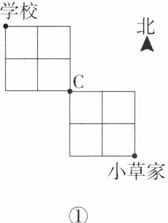 如图①所示,从学校到小草家的田间小道是由两个连着的“田”字组成的。