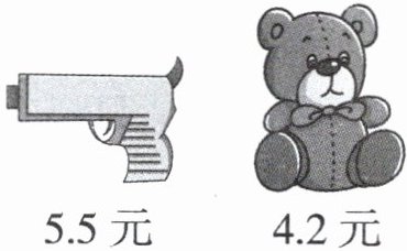 9. 小力有10元钱,买了一把玩具手枪和一个玩具熊,还剩多少钱?