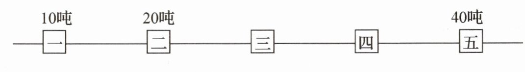 二号仓库到五号仓库的距离为$3×100 = 300$(千米),货物$20$吨,运费为$20×300×4 = 24000$(元);