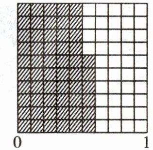 解析:图中大正方形被平均分成了100个小方格,阴影部分占其中的56个小方格。用小数表示每个小方格代表0.01,所以56个小方格就是$56× 0.01=0.56$。