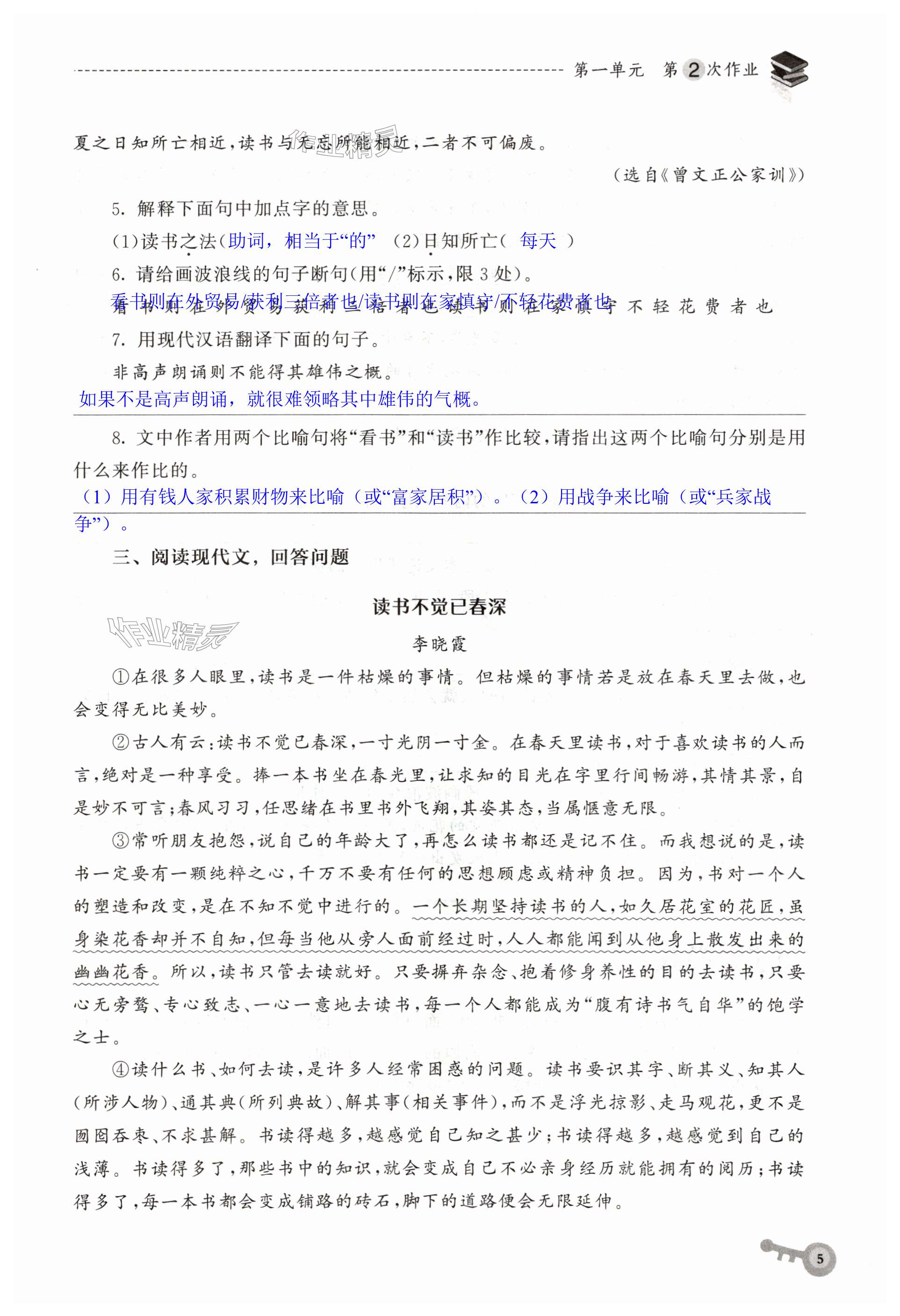 注:目前有些书本章节名称可能整理的还不是很完善,但都是按照顺序排列的,请同学们按照顺序仔细查找。练习册 2025年暑假作业华中科技大学出版社八年级语文人教版 答案主要是用来给同学们做完题方便对答案用的,请勿直接抄袭。