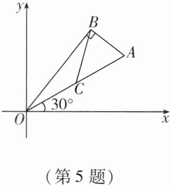 5. 如图,在平面直角坐标系中,Rt△OAB的斜边OA在第一象限,并与x轴的正半轴夹角为30°.C为OA的中点,BC= 1,则点A的坐标为(