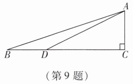 9. 为了比较$\sqrt {5}+1与\sqrt {10}$的大小,可以构造如图所示的图形进行推算,其中∠C= 90°,BC= 3,点D在BC上,且BD= AC= 1.通过计算可得$\sqrt {5}+1$