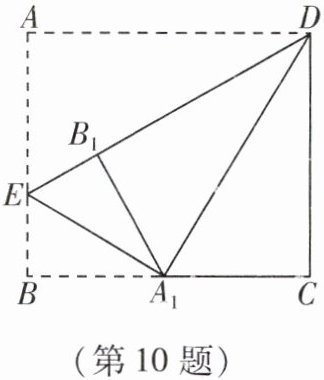 10. 如图,在矩形ABCD中,$AD = 4$,将$∠A$向内翻折,点A落在BC上,记为点$A_{1}$,折痕为DE.若将$∠B沿EA_{1}$向内翻折,点B恰好落在DE上,记为点$B_{1}$,则$AB = $