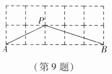 9. 如图所示的网格是正方形网格,$∠APB = $______°.