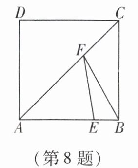 8. 如图,正方形ABCD的边长为4,点E在AB上且$BE = 1$,F为对角线AC上一动点,则$△BFE$周长的最小值为