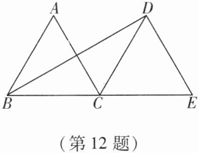 12. 如图,$△ABC和△DCE$都是边长为4的等边三角形,点B,C,E在同一条直线上,连接BD,求BD的长.