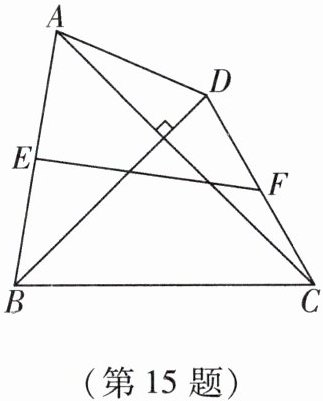 15. 如图,在四边形ABCD中,$AC\perp BD$,$BD = 12$,$AC = 16$,E,F分别为AB,CD的中点,求EF的长.