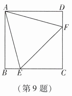 9. 如图,在正方形$ABCD$中,边长为$2的等边三角形AEF的顶点E$,$F分别在BC和CD$上,下列结论:①$CE= CF$;②$∠AEB= 75^{\circ }$;③$BE+DF= EF$;④正方形对角线$AC= 1+\sqrt {3}$,其中正确的序号是____
