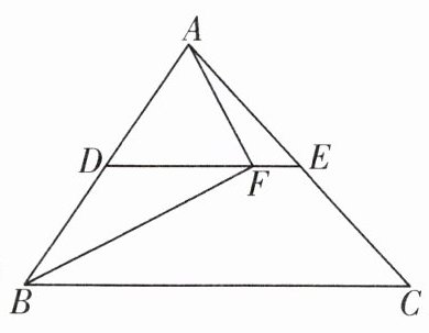 8. 如图,$DE为\triangle ABC$的中位线,点$F在DE$上,且$∠AFB= 90^{\circ }$,若$AB= 6,BC= 8$,则$EF$的长为____