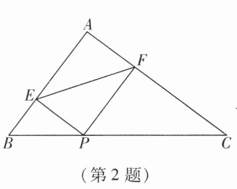 2. 如图,在$Rt\triangle ABC$中,$\angle A= 90^{\circ}$,$AB= 3$,$AC= 4$,P为边BC上一动点,$PE\perp AB$于点E,$PF\perp AC$于点F,则EF的最小值为(