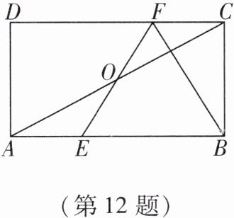 12. 如图,在矩形ABCD中,E,F分别是边AB,CD上的点,$AE= CF$,连接EF,BF,EF与对角线AC交于点O,且$BE= BF$,$\angle BEF= 2\angle BAC$,若$BC= 2\sqrt{3}$,求AB的长.