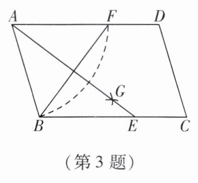 3. 如图,在平行四边形 $ABCD$ 中,用直尺和圆规作 $∠BAD$ 的平分线 $AG$ 交 $BC$ 于点 $E$,以 $A$ 为圆心,以 $AB$ 的长为半径画弧交 $AD$ 于点 $F$,若 $BF = 12$,$AB = 10$,则 $AE$ 的长为 (