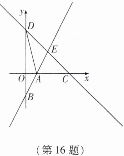 16. 如图,已知直线$AB:y= ax-2a(a>0)与x$轴,$y轴分别交于A$,$B$两点,直线$CD:y= -x+8与x$轴,$y轴分别交于C$,$D$两点,两直线交于点$E$. 连接$AD$,当$\triangle ADE$的面积为12时,求直线$AB$的解析式.