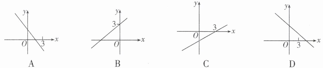 3. 若方程$kx + b = 0的解是x = 3$,则函数$y = kx + b$的图象可能是(