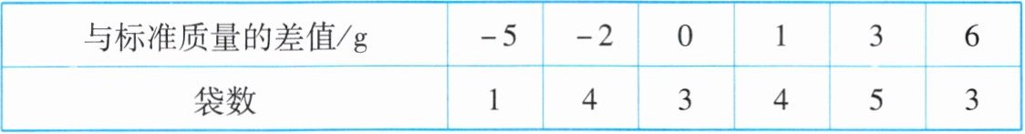 11. 某一食品厂从生产的袋装食品中抽出样品20袋,检测每袋的质量是否符合标准,超过或不足的部分分别用正、负数来表示,记录如下表: