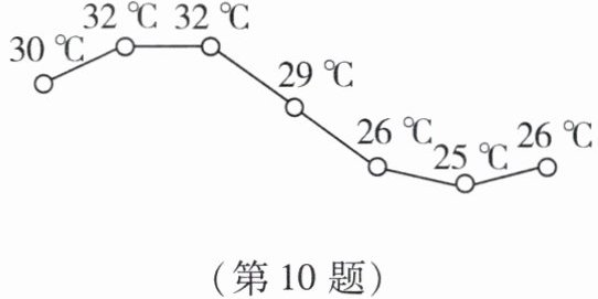10. 如图所示为某地7天最高气温走势图,这组数据的极差为