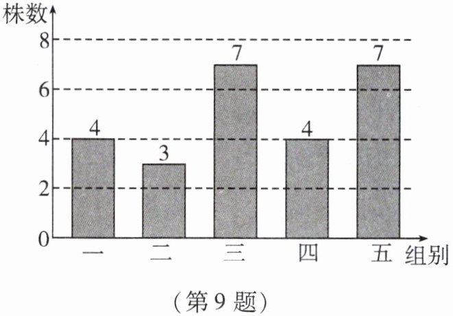 9. 某校五个小组在一次植树活动中植树株数的统计图如图所示,则平均每组植树